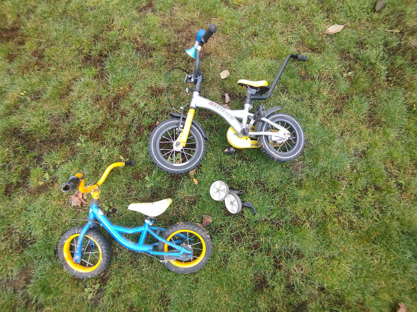 Sprzedam 2 rowerki.jeden biegowy drugi na pedały z bocznymi kułkami.nasz młody nauczył się na nich jezdzic.