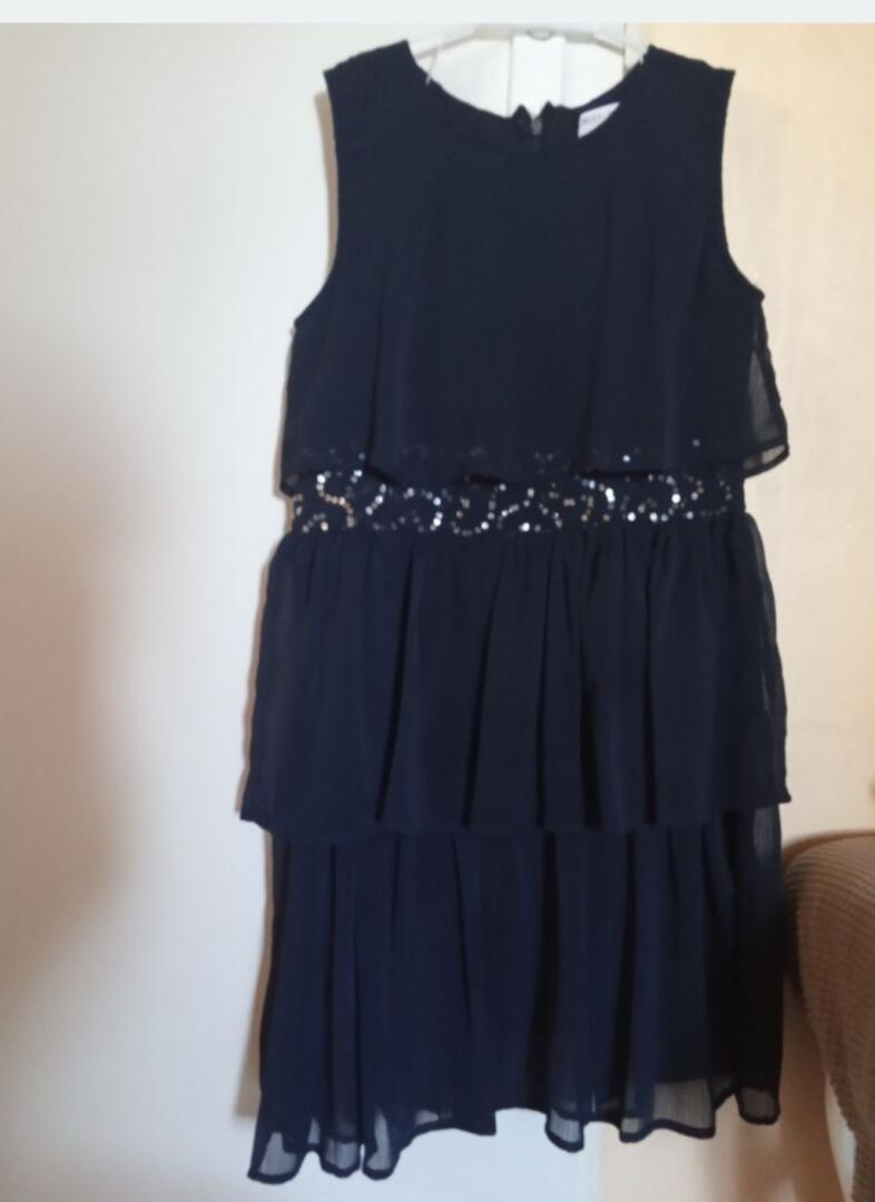 Piękna granatowa sukienka r 146 na różne okazje, mało ubrana stan jest idealny polecam.Dorzucam rajstopy przezroczyste r 146-152