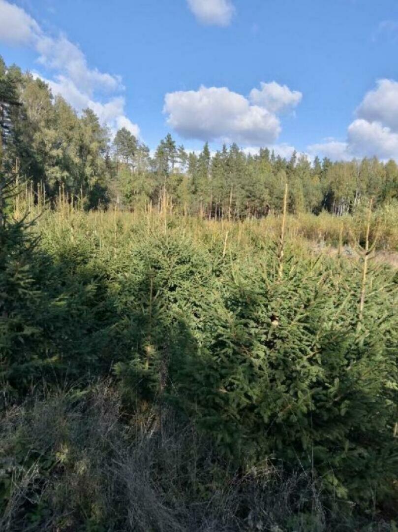 Choinki żywe, rosną; Klient wybiera, my wycinamy i pakujemy w siatkę.